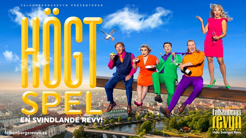 Falkenbergsrevyn driver med vår samtid och gör det med humor av både finess och klass i nya revyn Högt Spel – en svindlande revy. Nya revyn är starkt kopplad till att det är många som spelar högt världen över vilka mår bäst av att tas med en komisk klackspark. Världen blir inte roligare än vi gör den. I en tid av oroliga utsikter - har revyn goda avsikter - att sprida roliga insikter. Det kan gälla alltifrån höga tullar & kaffepriser och Kungens svårigheter att hålla reda på sina barnbarn till att skoja med plattmasken, toppmöten och regeringens katapultstol när det gäller höga chefer och mycket, mycket mer….